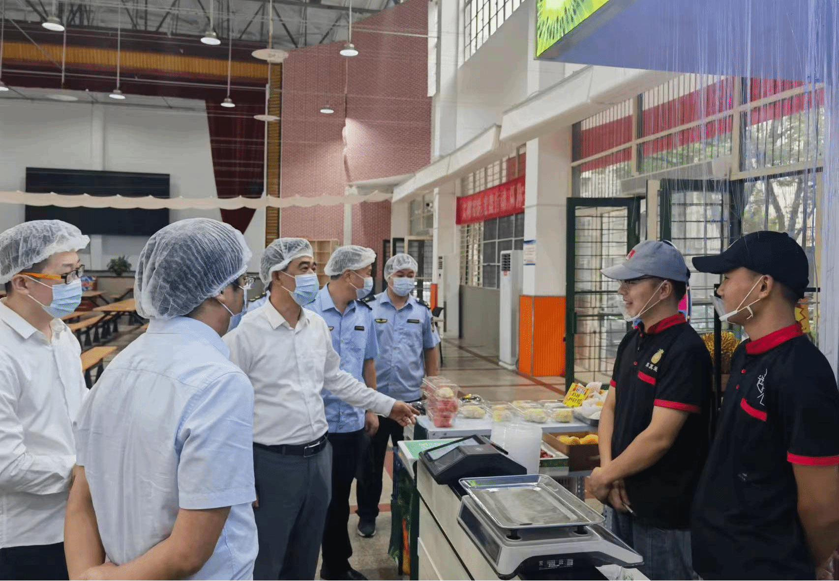 金玉在食堂与现场负责人员深入交流,详细了解学校食品安全管理工作情况,现场查看食堂各专间,对食品安全管理制度建设、操作流程、饭菜菜价等情况进行了重点了解。金玉对威尼斯官网食品安全工作给予了充分肯定,要求在校餐饮企业持续落实好《企业落实食品安全主体责任监督管理规定》,切实守牢校园食品安全底线,做好校园餐饮服务。