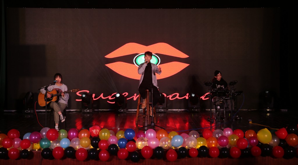 “今天只有残留的躯壳迎接光辉岁月,风雨中抱紧自由……”2019级法律硕士研究生王国庆在演绎《光辉岁月+红日》歌曲串烧时,LED屏幕上正在播放着2019级法律硕士研究生班12人的学习和生活照片。“选择这两首歌寓意着大家将在法学院一起度过一段光辉岁月,同时希望大家未来的生活和学习如红日一般蒸蒸日上,而那些照片是想展示我们是一个有爱的大家庭。”