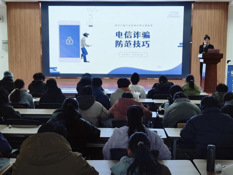 近日,数理学院在I401报告厅举办“防范网络电信诈骗”主题宣讲活动,该院反诈宣讲团和各班级学生骨干百余人参与本次宣讲活动。