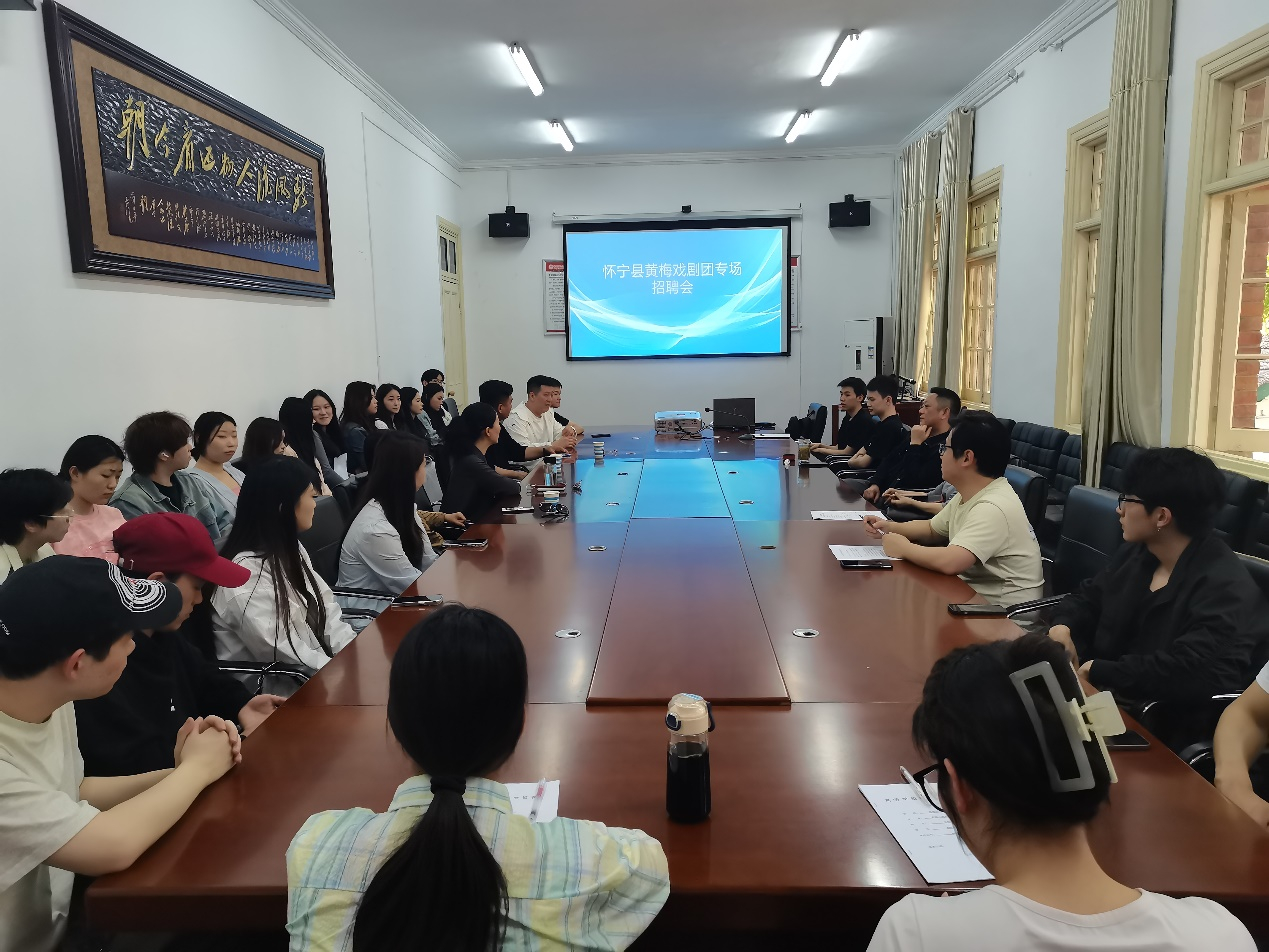 4月8日,怀宁县黄梅戏剧团走进黄梅剧艺术学院举办专场招聘会。此次招聘会主要针对表演专业毕业生,为广大学生开辟就业通道的同时,也为剧团吸纳优秀人才,进一步推动黄梅戏艺术的传承与发展。