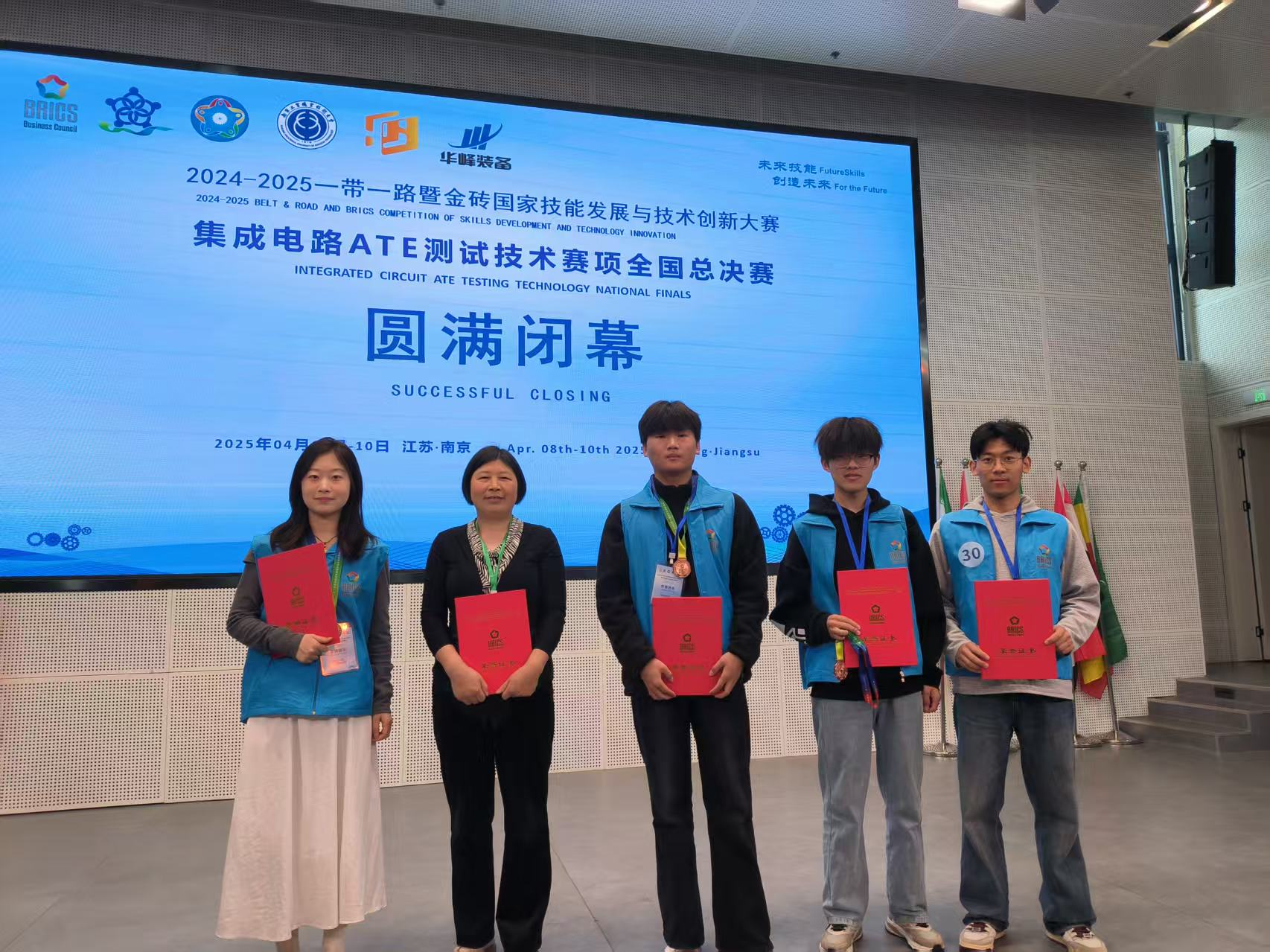 4月8日至10日,2024-2025“一带一路”暨金砖国家技能发展与技术创新大赛(集成电路ATE测试技术赛项)全国总决赛在南京工业职业技术大学举行。该项比赛共吸引了来自全国14个省以及直辖市的选手同台竞技。威尼斯官网电子工程与智能制造学院詹文法、郑江云和蔡雪原三位教师指导的两支队伍(团队成员:杨晨露、蒋书航;戚盛源、李荣耀)分别取得了二等奖、三等奖的好成绩,学校获得优秀组织奖单位荣誉称号。