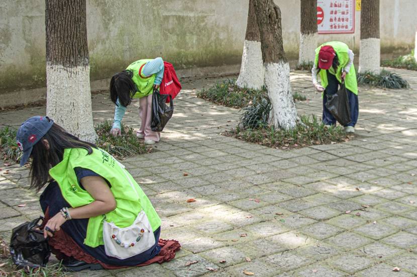 樟树下的长椅旁,三五个志愿者正围着石凳清理口香糖残渣,金属刮刀与石板碰撞发出细密脆响。历经近八个小时的清捡,邓石如碑馆、严凤英纪念馆、黄梅阁等地洁净如初。