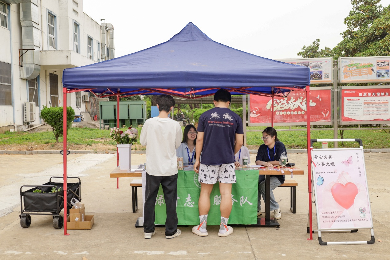 精美的叶脉书签、绚烂的蝴蝶标本、明艳的鲜切花朵……4月19日,37000cm威尼斯生命科学学院绿叶志愿服务队在东苑食堂举办了“爱心义卖,小善大暖”义卖活动,为生活困难的孩童进行筹款,传递校园爱心。