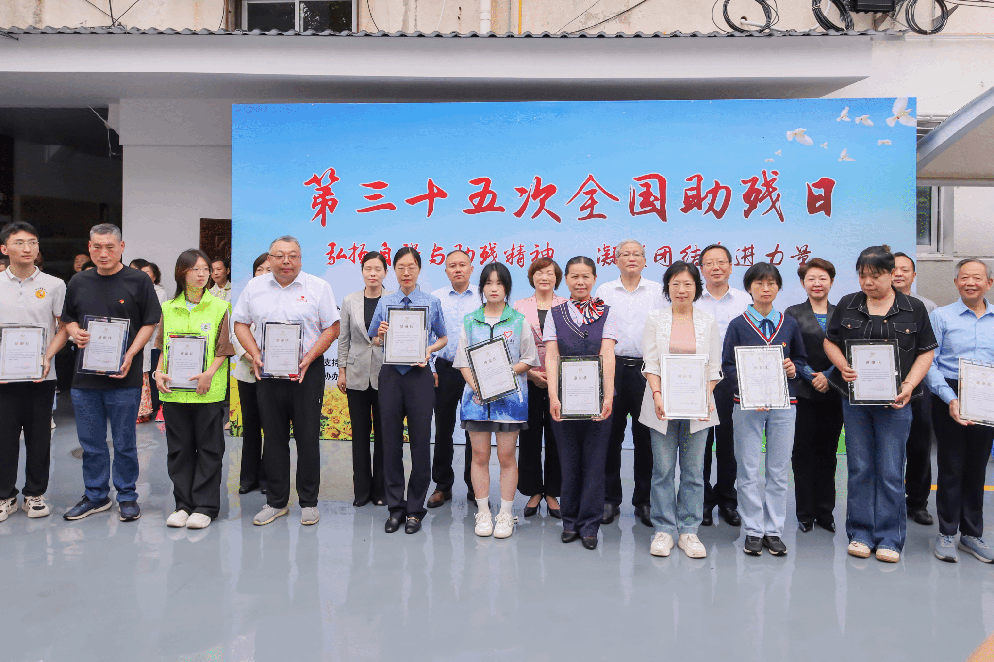 在第35次全国助残日来临之际,5月16日,教育科学学院携手沐阳之家残疾儿童康复中心(以下简称“沐阳之家”)举办以“弘扬自强与助残精神,凝聚团结奋进力量”为主题的公益活动。安庆市人大、政协、发改委、迎江区、残联、团市委等有关市、区领导及爱心单位、爱心人士和志愿者、沐阳之家师生代表200余人参加活动。校工会主席杨永久、教育科学学院党委书记何孔蛟、教务处副处长林秋菊、特殊教育教研室党支部书记郭启华和学生代表参加活动。