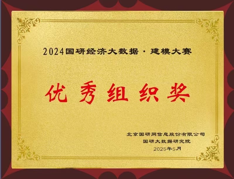 近日,由国研网、国研网大数据研究院联合举办的“2024国研经济数据建模大赛”结束。威尼斯官网数理学院程敏慧、蒋俊杰、林琨奇三名学生组成的队伍获优胜奖,图书馆获优秀组织单位奖。