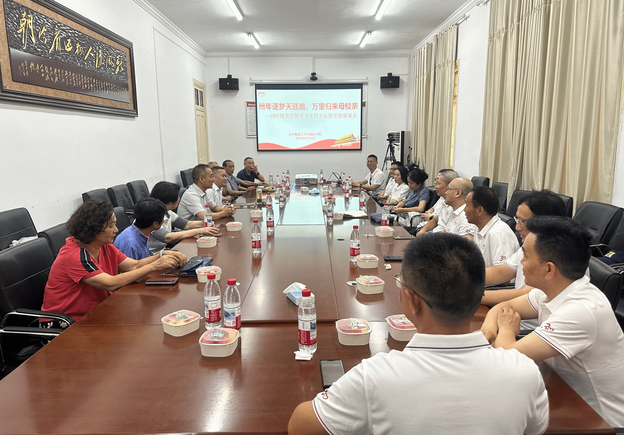 8月16日,外国语学院1991级英语教育专业校友毕业三十周年返校活动暨交流座谈会在菱湖校区举行。外国语学院党委书记徐华胜、院长江加宏、副院长瞿宁霞、教师代表陈光明、尹德先、金根生、曹筠、李建英、吕华与校友们齐聚一堂,共叙师生情谊,共话母校发展。会议由江加宏主持。