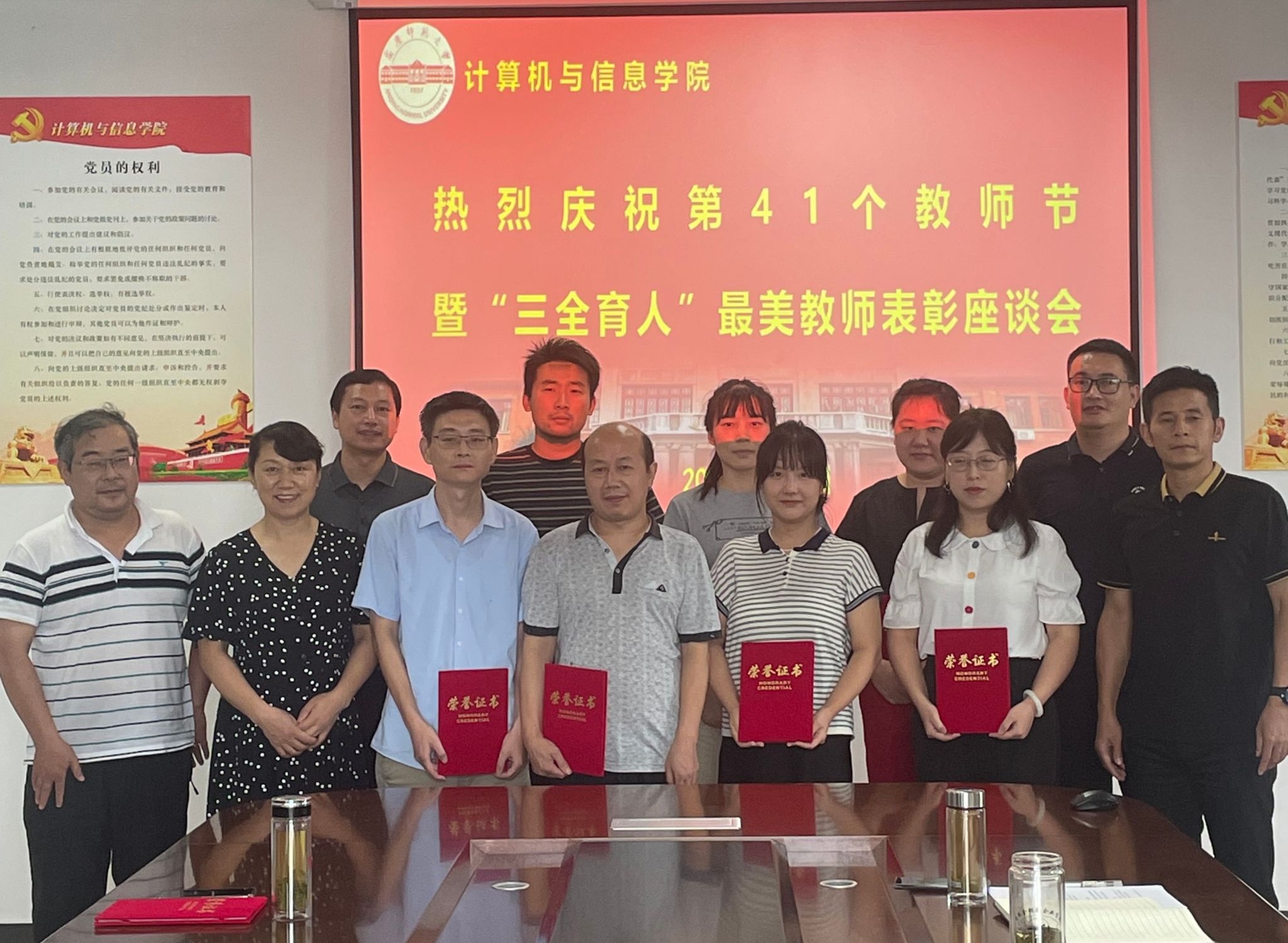 9月9日,计算机与信息学院在L楼318教室召开“庆祝第41个教师节暨‘三全育人’最美教师表彰座谈会”。学院领导班子成员、受表彰教师以及教职工代表参加座谈会。党委副书记肖之进主持会议。