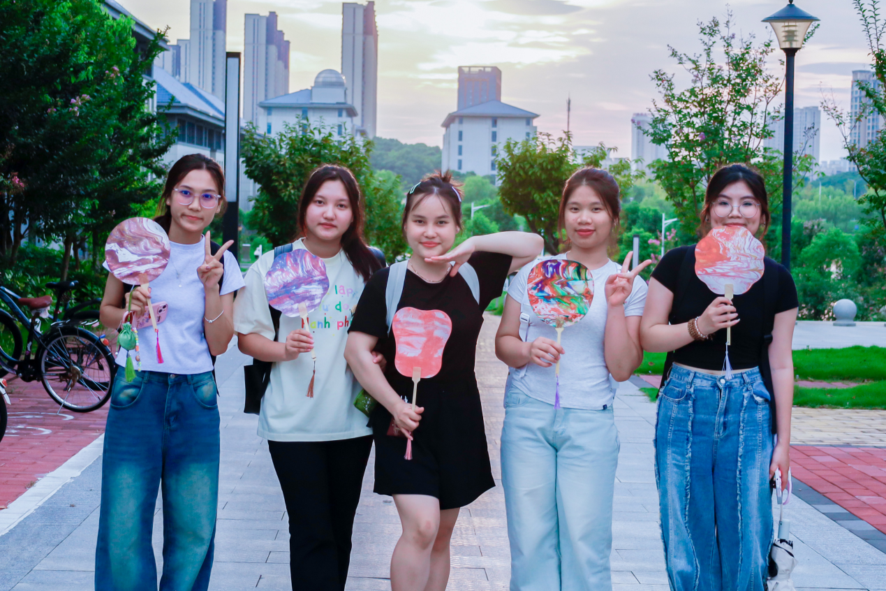 “三二一,茄子!”五位来自越南的留学生面带笑容摆出各具特色的造型。她们腰间佩戴香囊,手中高高举起亲手制作的精美漆扇。随着相机“咔嚓”一声轻响,这一画面被永久定格。