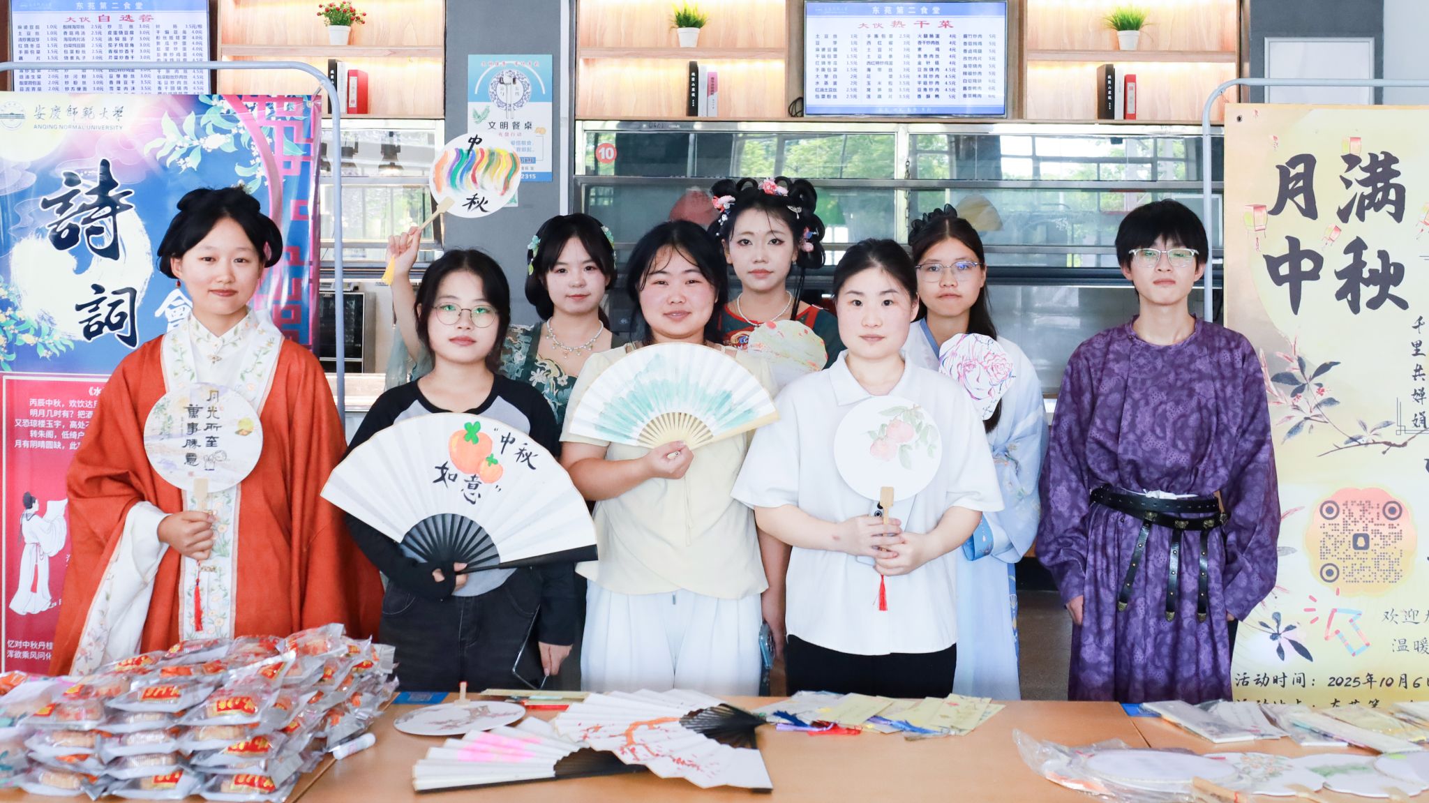 10月6日,学校东苑第二食堂联合书画协会、大学生华夏文礼汉服社,共同举办“中秋节诗词大会”。活动以诗词为媒、以非遗为韵,为全校师生打造一场兼具节日氛围与文化内涵的中秋“盛宴”。