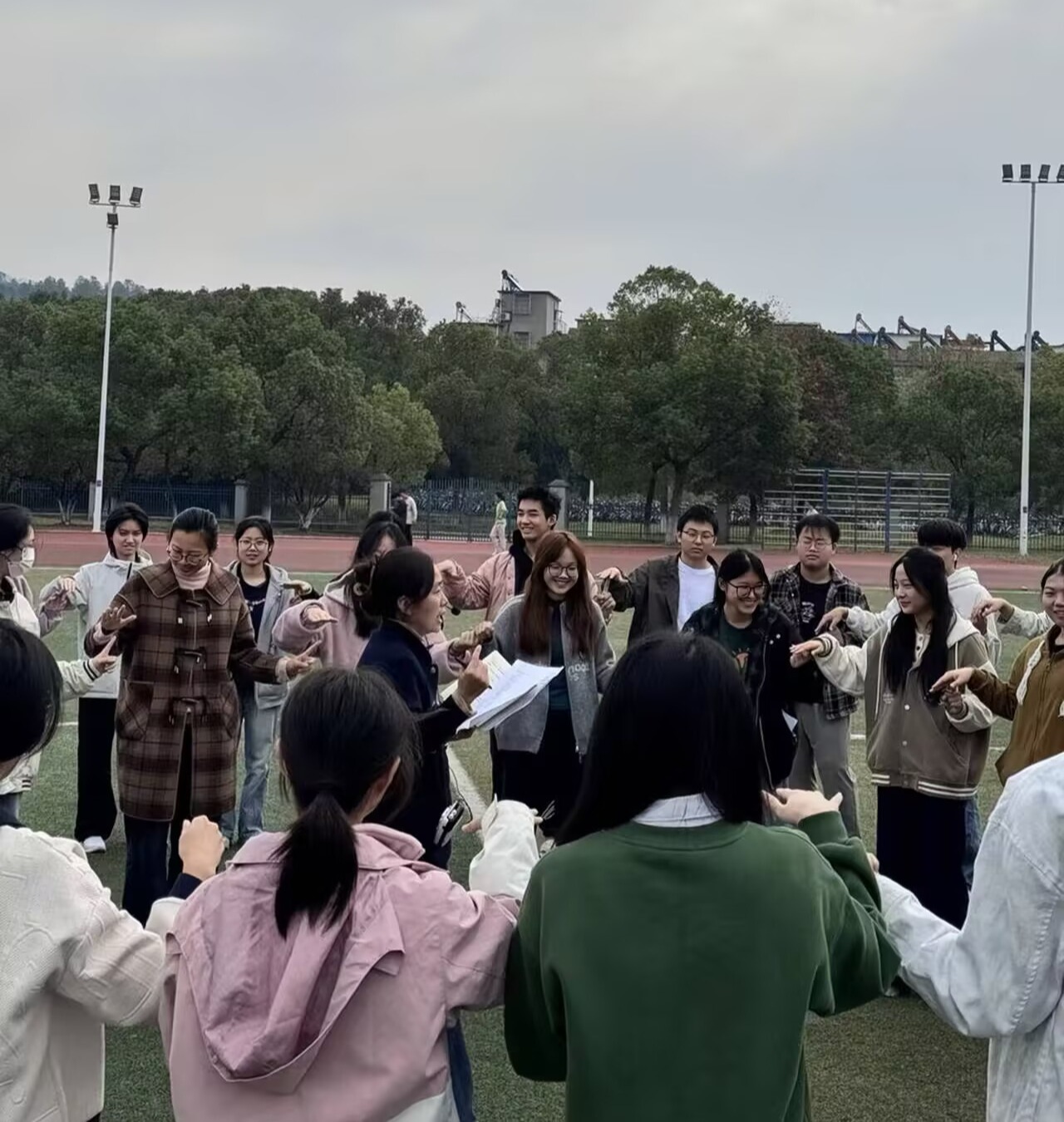 11月4日,数学与应用数学2024级1、2班辅导员滕秀花老师带领全体同学在东门操场开展“携手同行 共筑未来梦”班级心理团建活动。活动由“抓住幸福 放掉烦恼”破冰游戏、名字接龙、我的五样、关注当下四个部分组成,把关于“生命价值”的探讨巧妙地融入到班级团建游戏当中,进一步加强了大学生心理健康教育,引导学生树立正确的生命价值观,培养积极乐观的人生态度。