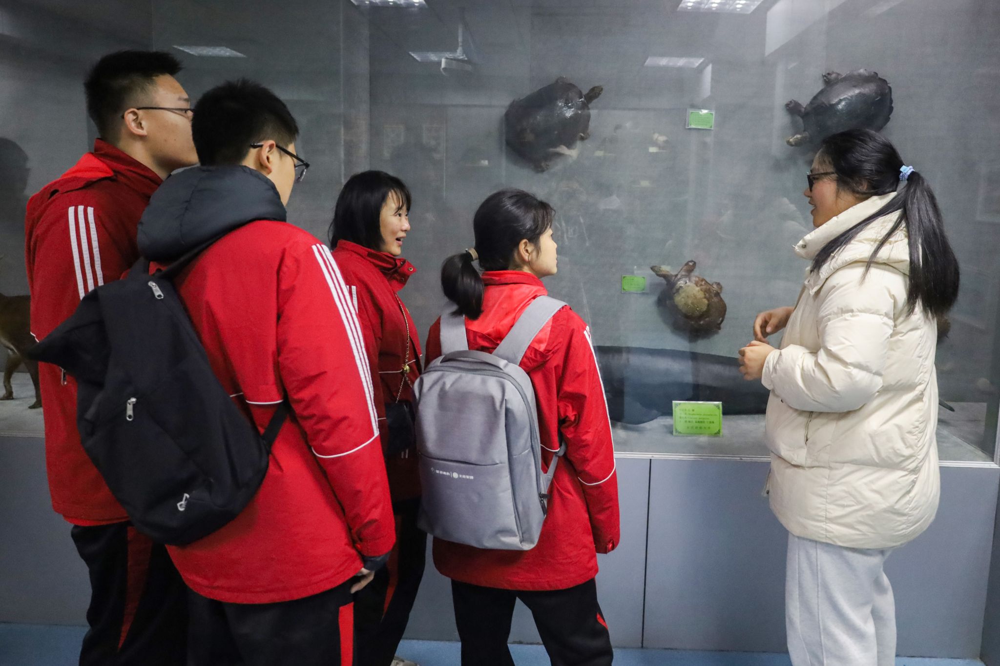“不知道大家有没有发现,日常生活中看到的麻雀只会跳不会走路对不对,那它为什么不会走路呢?这是因为鸟类后肢肌肉附着与其他动物不同……”作为本次标本馆的讲解员,生物科学专业2023(2)班的郭晨曦提早来到标本室,一遍遍记忆着讲解内容,为介绍馆内标本做准备。“要把专业知识变‘接地气’,我选择用‘提问+故事’的方式代替枯燥的理论讲述。”在标本的讲述过程中,郭晨先抛出问题,引起学生们的思考和兴趣,再结合自身经验,将晦涩难懂的理论知识生动地向学生们讲述,收获参观学生和带队教师一致好评。