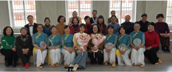 联欢会在温馨热烈的氛围中拉开帷幕。学员代表首先向辛勤授课的刘蕊、袁帆两位老师敬献鲜花,表达对老师们悉心指导的诚挚感谢与深深敬意。舞蹈班学员带来的《茉莉花》舞姿优雅、古典舞手位组合韵味十足、《杏花烟雨》则仿佛将观众带入江南水墨画卷。声乐班学员们更是大放异彩,一曲曲动听的歌声回荡在教室:《白头吟》的婉转、《树上的鸟儿成双对》的欢快、《在水一方》的自弹自唱深情款款、《映山红》的经典重温、《红梅花儿开》的和谐悦耳,特别是声乐班全体学员压轴表演的大合唱《满城烟花》,将现场气氛推向高潮。声乐班刘蕊老师全程为节目进行精彩的钢琴伴奏,在活动的最后环节倾情献唱了一曲《蓝天下》,刘老师专业的演唱和深情的演绎,赢得了全场最热烈的掌声,也为本学期的课程画上了一个圆满而美妙的句号。