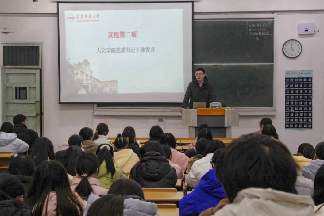 12月17日,人文学院在教学楼315教室举办2025—2026学年第一学期考风考纪教育大会,旨在严肃考风考纪,涵养优良学风。本次会议由人文学院团委负责人主持,人文学院党委书记王波、副院长周红兵、党委秘书唐莉出席会议,各班级党员、入党积极分子、班长、学习委员及2025级新生代表参加会议。