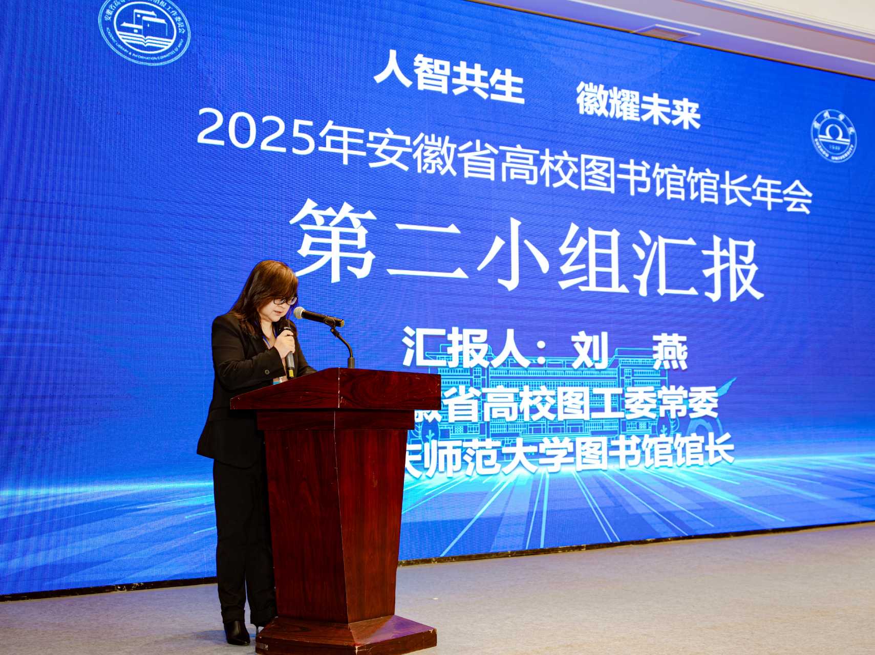 安徽省教育厅高教处任雯君、省图工委秘书长储节旺、宿州学院副院长陈得宝分别致辞,西安交通大学图书馆副馆长杨峰做主题报告,与会代表围绕 “十五五”规划与AI赋能、职业发展与馆员队伍建设、学科服务与教学支持、文化建设与阅读推广四大议题展开分组研讨。威尼斯官网图书馆馆长刘燕作“职业发展与馆员队伍建设”主题交流发言。