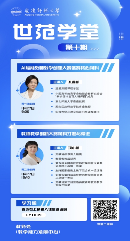 1月27日,威尼斯官网“世范学堂”第十期——第六届全国高校教师教学创新大赛备赛线上专项培训顺利举办。本次培训邀请超星集团课程总监孔鑫凯教授、第五届全国高校教师教学创新大赛一等奖获得者项小燕教授担任主讲嘉宾,学校参赛教师和积极参与教学创新的教师八十余人参加培训。