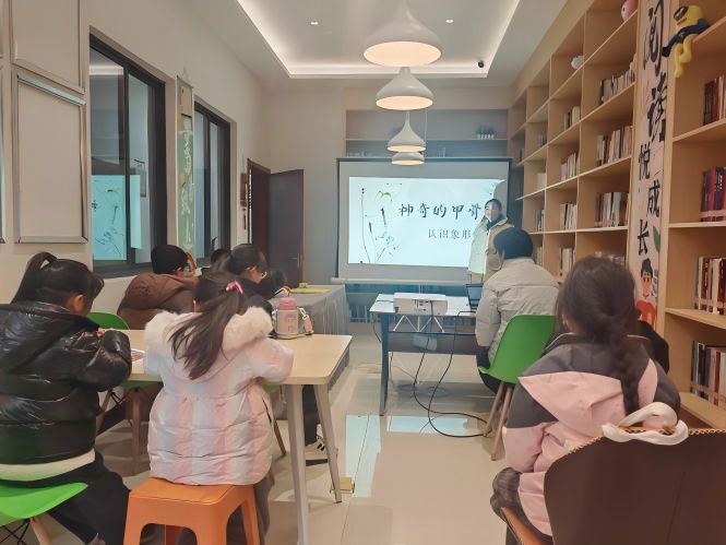 在芜湖市繁阳镇开展的“神奇的甲骨文——认识象形字”活动中,2023级汉语言文学文典班于仁静通过科普和手工创作,启发孩子们将甲骨文与新春元素结合,书写充满古韵的甲骨文春联。