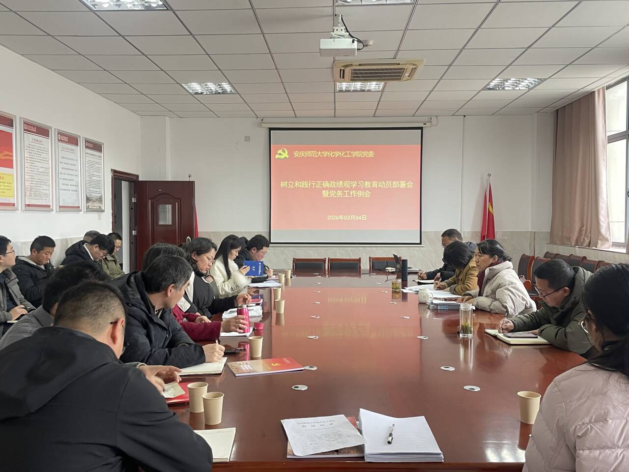 3月4日下午,化学化工学院党委在H304会议室召开树立和践行正确政绩观学习教育动员部署会暨党务工作例会,研究布置学院学习教育和党务工作。学院党委书记陈银凤主持会议,学院党委委员、党支部书记、支委委员等参加会议。