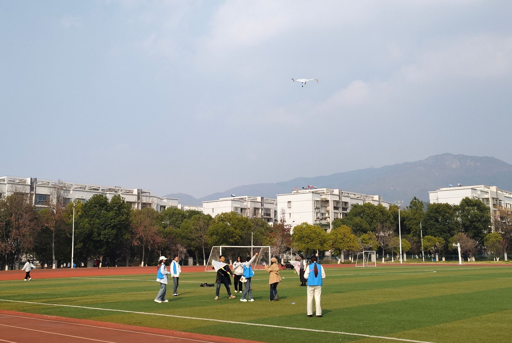 3月12日,数学与统计学院、物理与天文空间学院在学校大学生心理健康教育与服务中心指导下,联合举办2026年春季“绘心鸢·乘风行”户外素质拓展活动。近百名师生齐聚龙山校区东门运动场操场,在春日暖阳之下,以七彩风筝为介,放飞青春梦想。