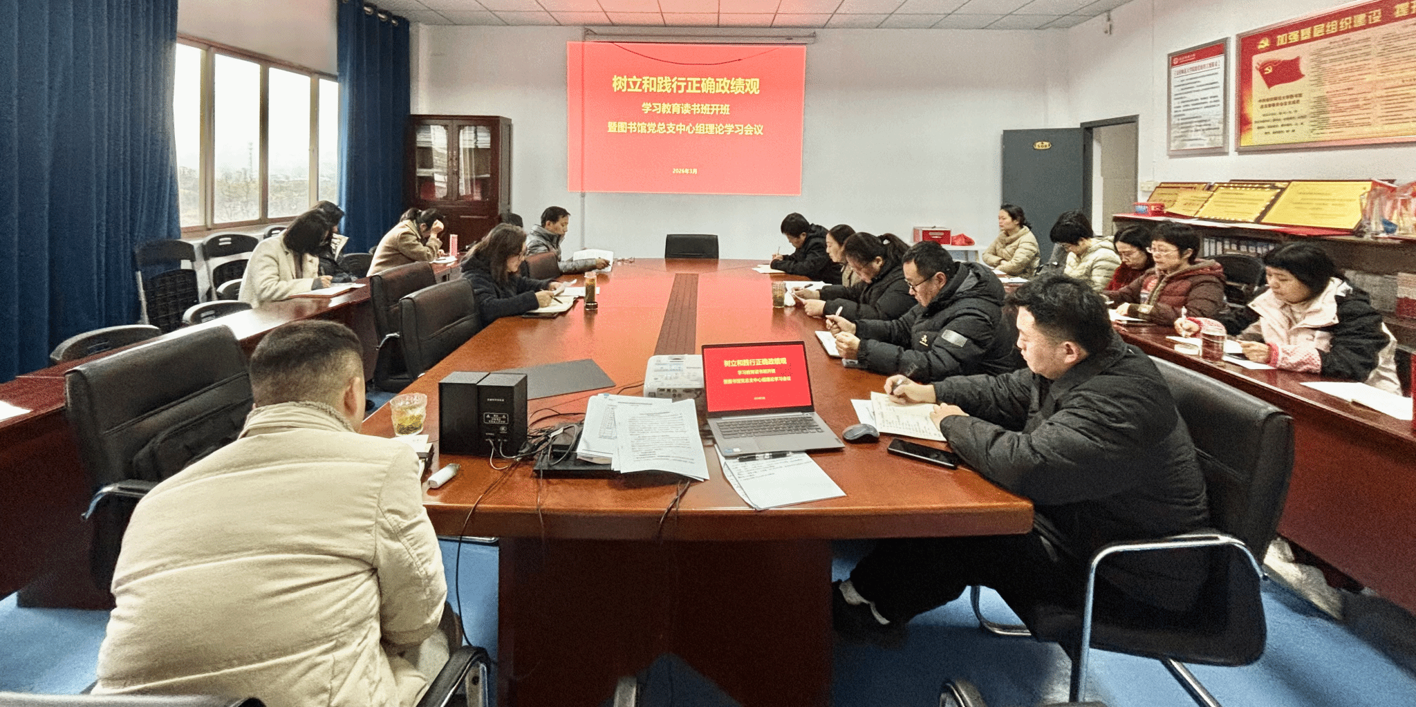 3月17日,图书馆举行树立和践行正确政绩观学习教育读书班开班式暨党总支理论学习中心组会议。图书馆科级以上干部、全体党员参加会议,图书馆党总支书记、馆长刘燕主持会议。