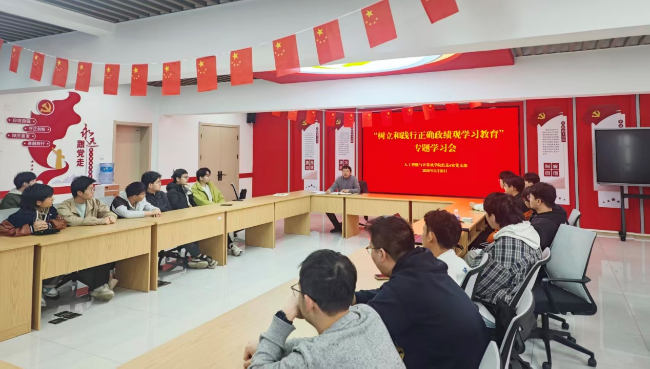 3月26日,人工智能与计算机学院红芯e家党支部在“一站式”学生社区开展树立和践行正确政绩观学习教育专题学习会,会议由学院党委副书记、红芯e家党支部书记肖之进主持,支部党员、发展对象和入党积极分子等30余人参加学习。