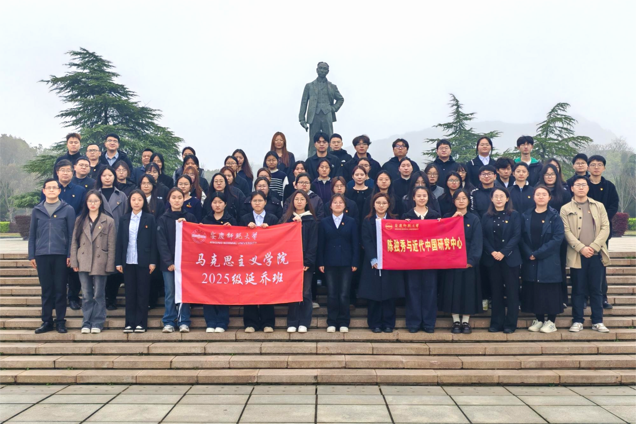 4月1日,陈独秀与近代中国研究中心全体成员,马克思主义学院延乔班、教师党支部、学生党支部党员代表和人文学院教师党支部、学生党支部党员代表,共赴独秀园,开展清明祭扫活动。