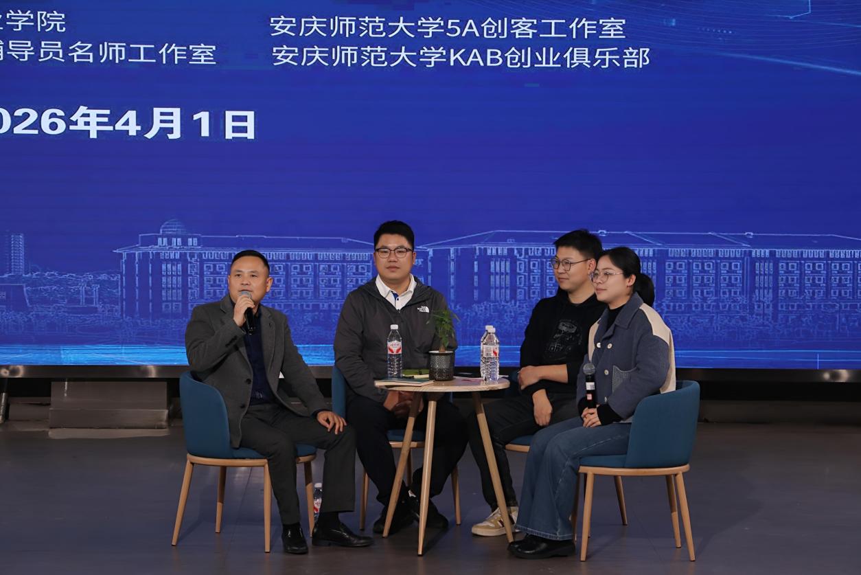 4月1日下午,5A创客“追梦”创业论坛活动在传媒学院演播厅举行,邀请学校2014届广播电视专业校友、安徽省新时代青年先锋、甘棠乡村originals团队负责人胡亮亮和2018届计算机科学与技术专业校友、上海玛布山科技有限公司技术总监吴伟康担任主讲嘉宾,安徽省创业筑梦导师、学校能源环境与空间信息工程学院党委书记夏斐出席,近百名学生参加。