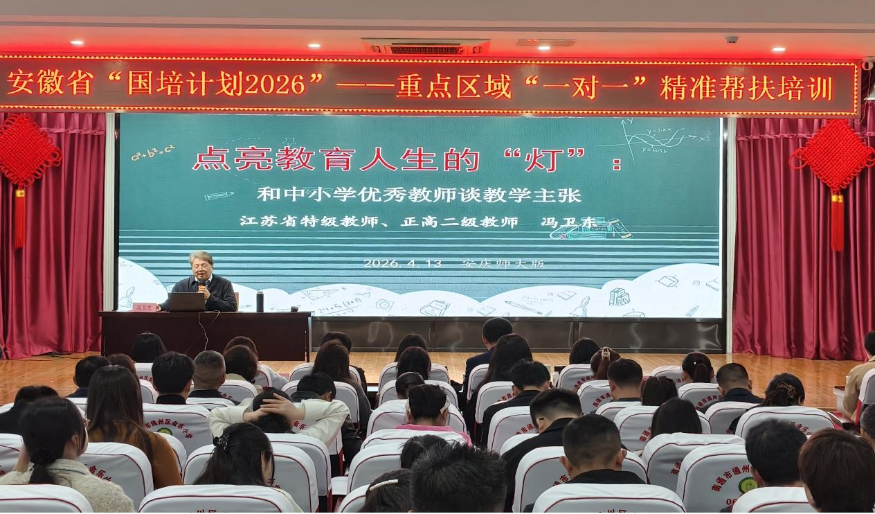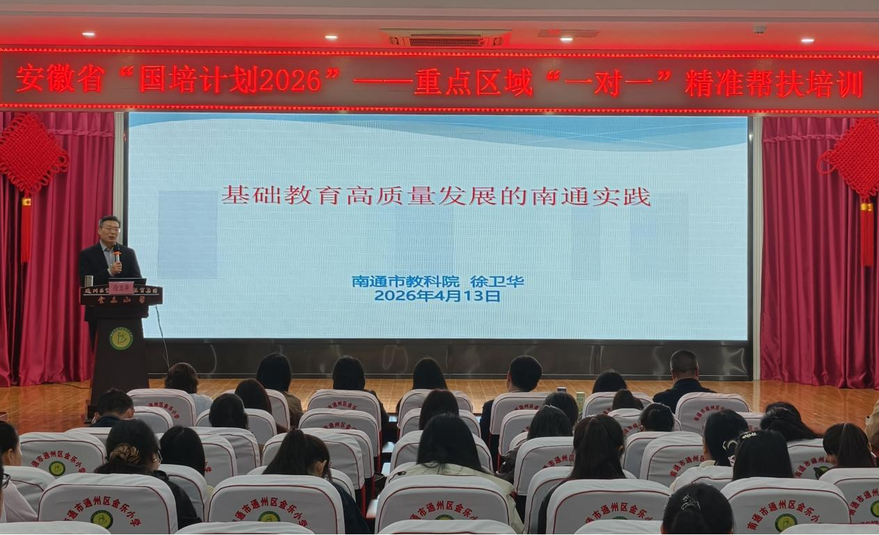 近日,由数学与统计学院、物理与天文空间学院承办的安徽省“国培计划(2026)”——“一对一”精准帮扶培训项目(第1包、第2包)跟岗研修培训,在江苏省南通市顺利开班。来自安徽省宿州市砀山县、灵璧县、泗县和萧县的263位名师、名班主任及名校长齐聚南通,开启为期数日的深度研修。
