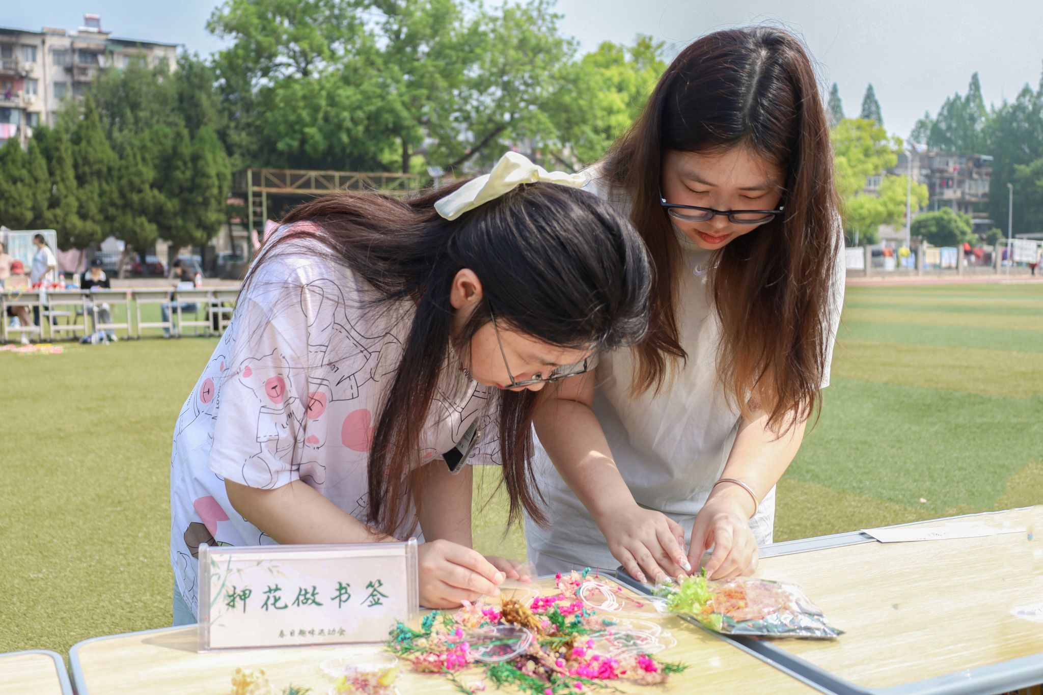 一刀一刻雕琢万象,一揉一捏塑就百态,一粘一贴定格芳华……在文艺展示区设置了纸雕、黏土、押花书签制作、茶文化知识问答、拼贴诗与飞花令六个摊位。学生们在亲身体验中,感受中华优秀传统文化的独特魅力。