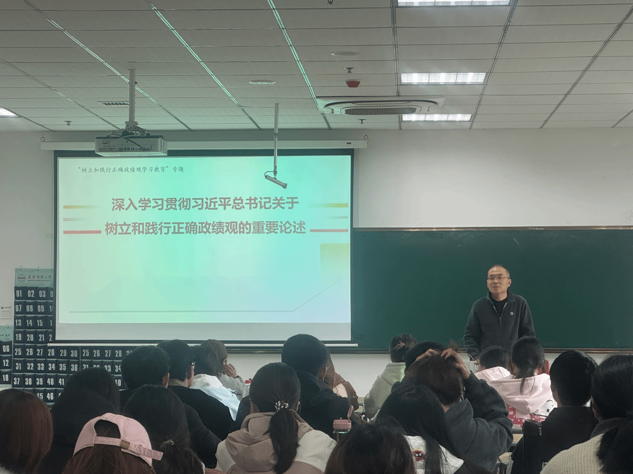 4月22日,马克思主义学院邀请安徽省教学名师、省委讲师团基层理论宣讲专家金文斌教授开展树立和践行正确政绩观学习教育专题党课。学院全体学生党员、第73期入党积极分子参加学习。