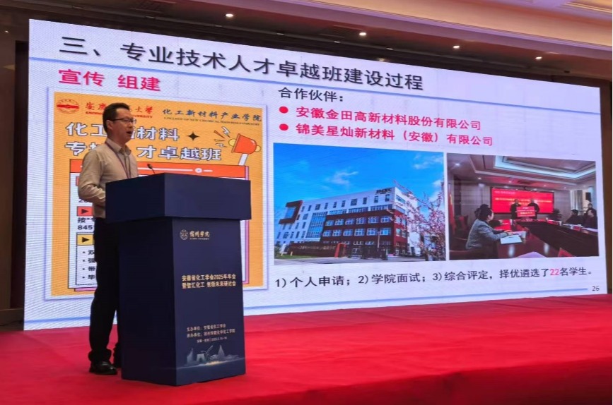 会上,官叶斌教授作了题为“创新校企协同育人模式 构建人才融合发展生态”的特邀报告,以“制药工程专技人才卓越班”“化工新材料专技人才卓越班”的建设成效为例,分享了37000cm威尼斯化工新材料产业学院在人才培养方面的经验做法。