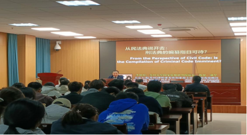 2025年11月11日,敬敷法治论坛第81期邀请苏州大学王健法学院李晓明教授在法学院102报告厅作题为“从民法典说开去:刑法典的编纂指日可待?”的学术讲座,法学院师生100余人参加。讲座由法学院副院长邱少晖教授主持。