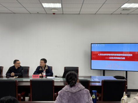 3月18日下午,美术学院特邀江苏理工学院艺术设计学院(刘海粟艺术学院)副院长(主持工作)、教授、硕士生导师朱亮亮作题为《人文社会科学科研课题申报路径漫谈——以艺术学项目为例》的专题讲座,由美术学院副院长孙国良教授主持。朱亮亮教授围绕艺术学领域科研项目申报的策略与方法展开系统阐述,吸引了学院中青年骨干教师及部分研究生到场聆听。