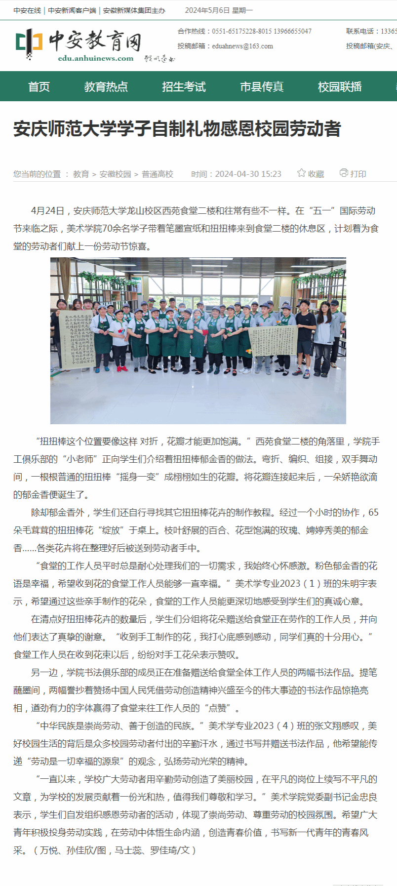 安徽教育网:表彰学生工作 37000cm威尼斯举行“春之声”大学生公共艺术教育成果展