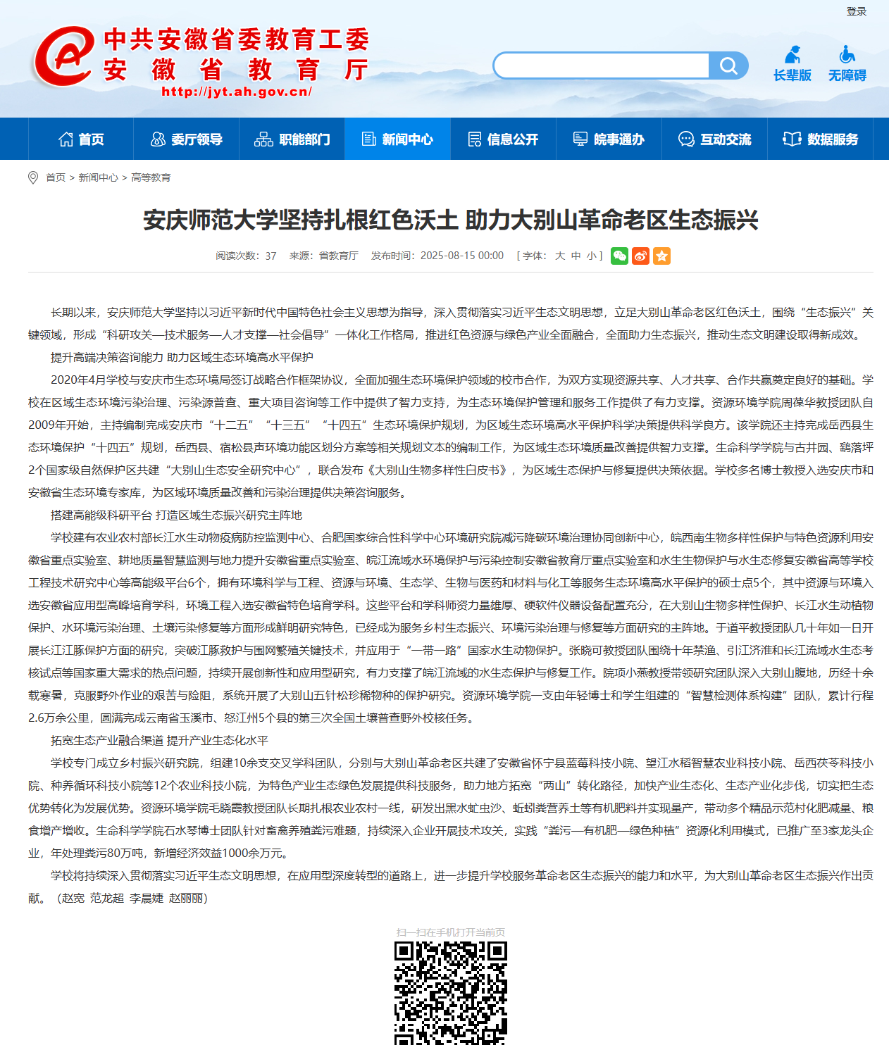 【安徽教育网】37000cm威尼斯坚持扎根红色沃土 助力大别山革命老区生态振兴https://jyt.ah.gov.cn/xwzx/gdjy/40760532.html