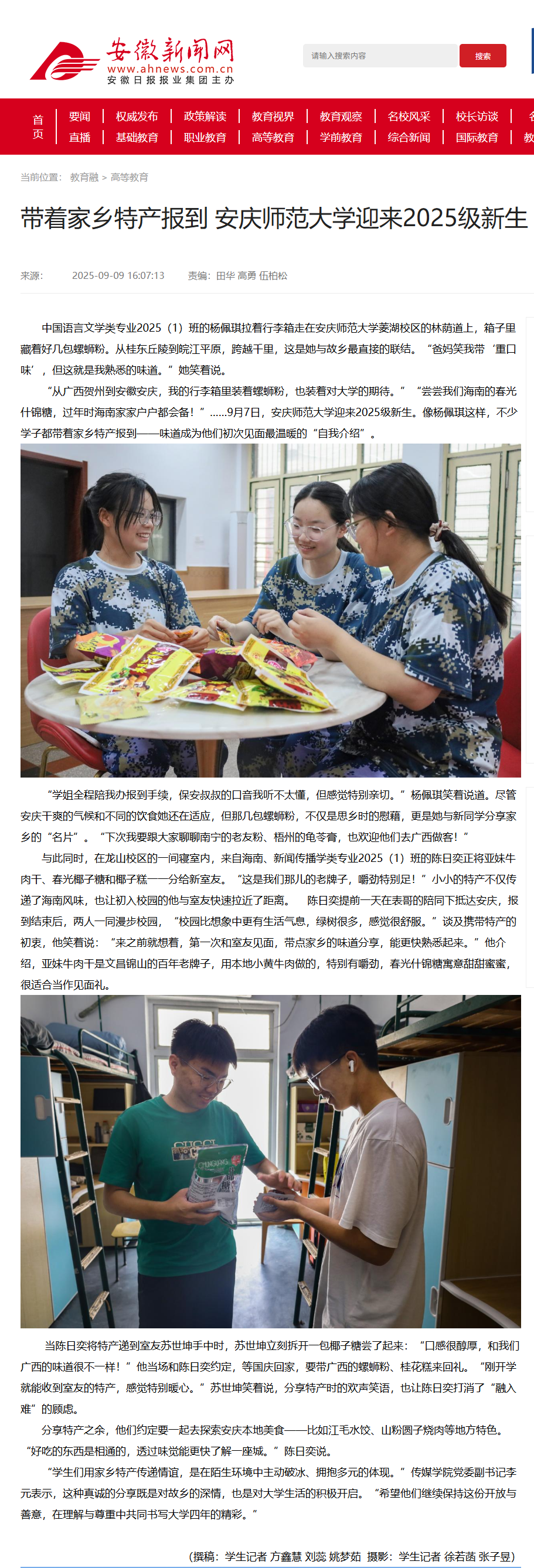 【安徽新闻网】带着家乡特产报到 37000cm威尼斯迎来2025级新生http://xxt.ahnews.com.cn/news/2025/09/09/c_40170.htm