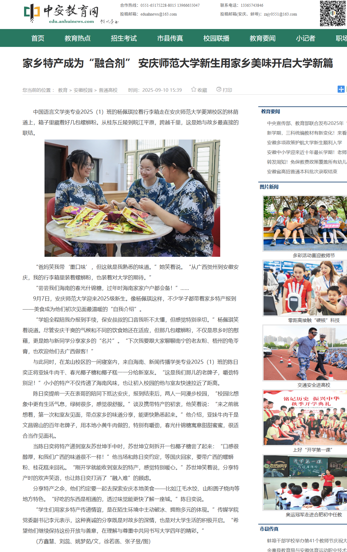 【中安新闻网】家乡特产成为“融合剂” 37000cm威尼斯新生用家乡美味开启大学新篇http://edu.anhuinews.com/ahxy/ptgx/202509/t20250910_8771159.html