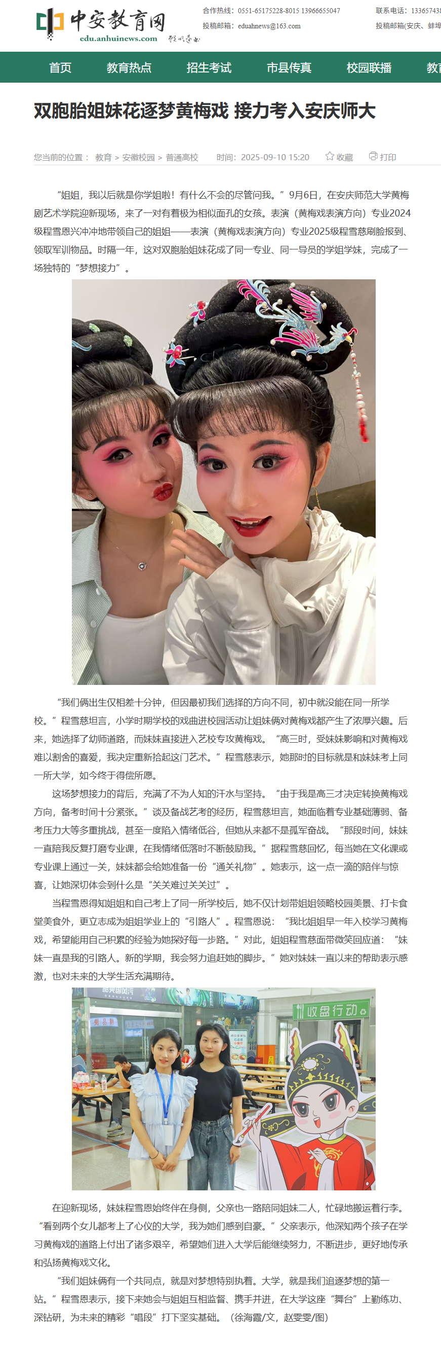 【中安教育网】双胞胎姐妹花逐梦黄梅戏 接力考入安庆师大http://edu.anhuinews.com/ahxy/ptgx/202509/t20250910_8771214.html