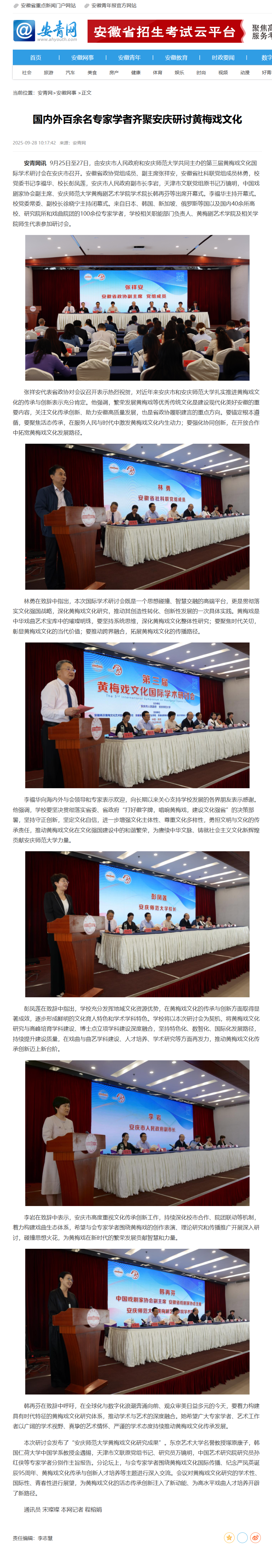 【安徽青年网】国内外百余名专家学者齐聚安庆研讨黄梅戏文化https://www.ahyouth.com/news/20250928/1768903.shtml