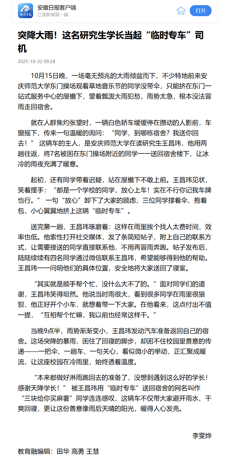 【安徽日报】突降大雨!这名研究生学长当起“临时专车”司机https://app.ahnews.com.cn/displayTemplate/news/newsDetail/3802/1582045.html?isShare=true