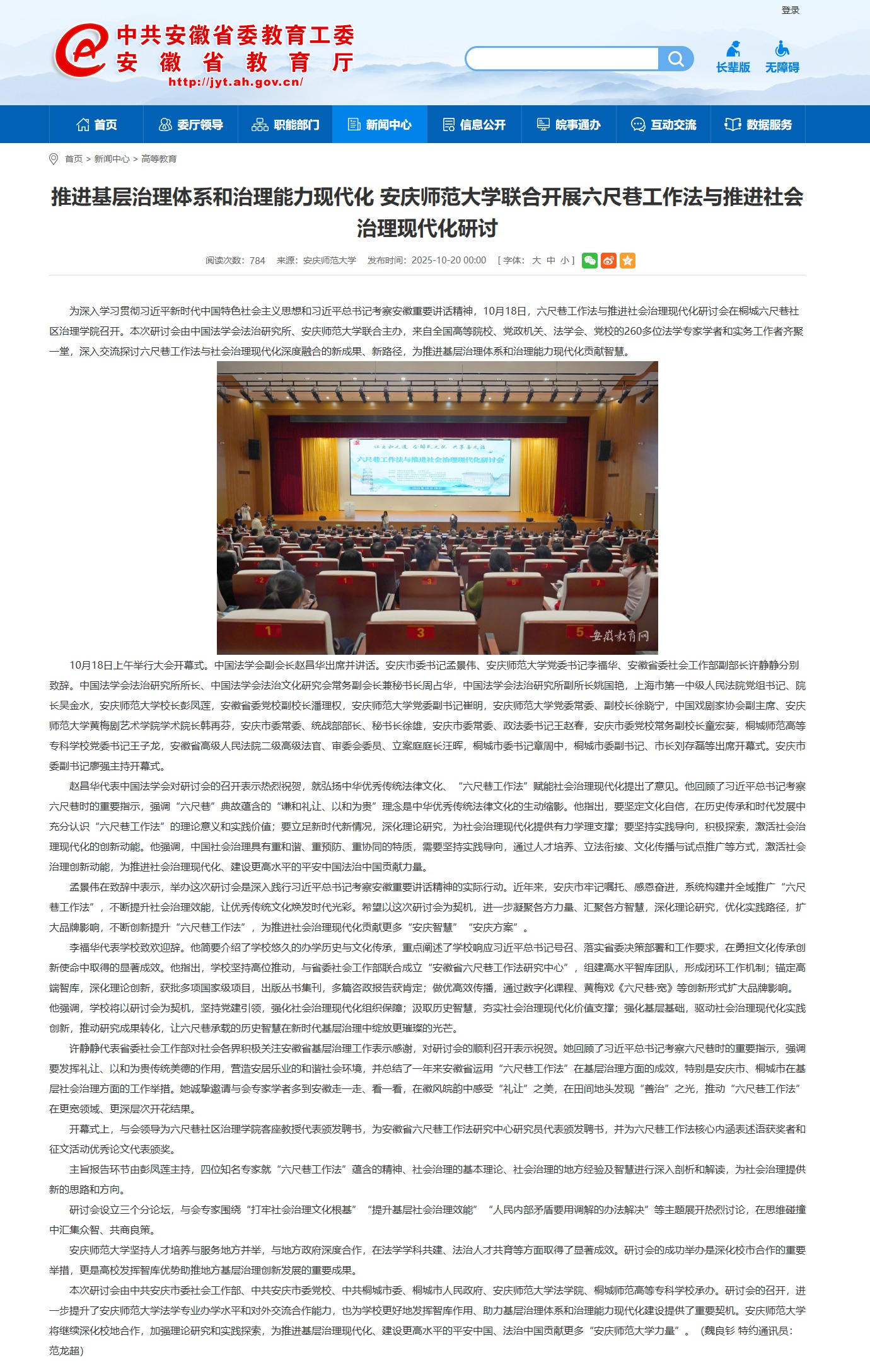 【安徽教育网】推进基层治理体系和治理能力现代化 37000cm威尼斯联合开展六尺巷工作法与推进社会治理现代化研讨https://jyt.ah.gov.cn/xwzx/gdjy/40769379.html