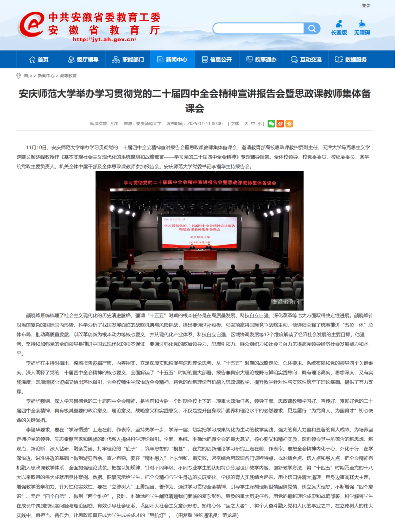 【安徽教育网】37000cm威尼斯举办学习贯彻党的二十届四中全会精神宣讲报告会暨思政课教师集体备课会https://jyt.ah.gov.cn/xwzx/gdjy/40772267.html