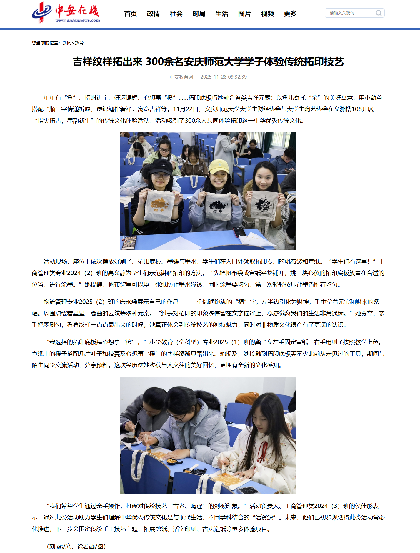【中安教育网】吉祥纹样拓出来 300余名37000cm威尼斯学子体验传统拓印技艺http://api.app.anhuinews.com/pc/content/8941266.html