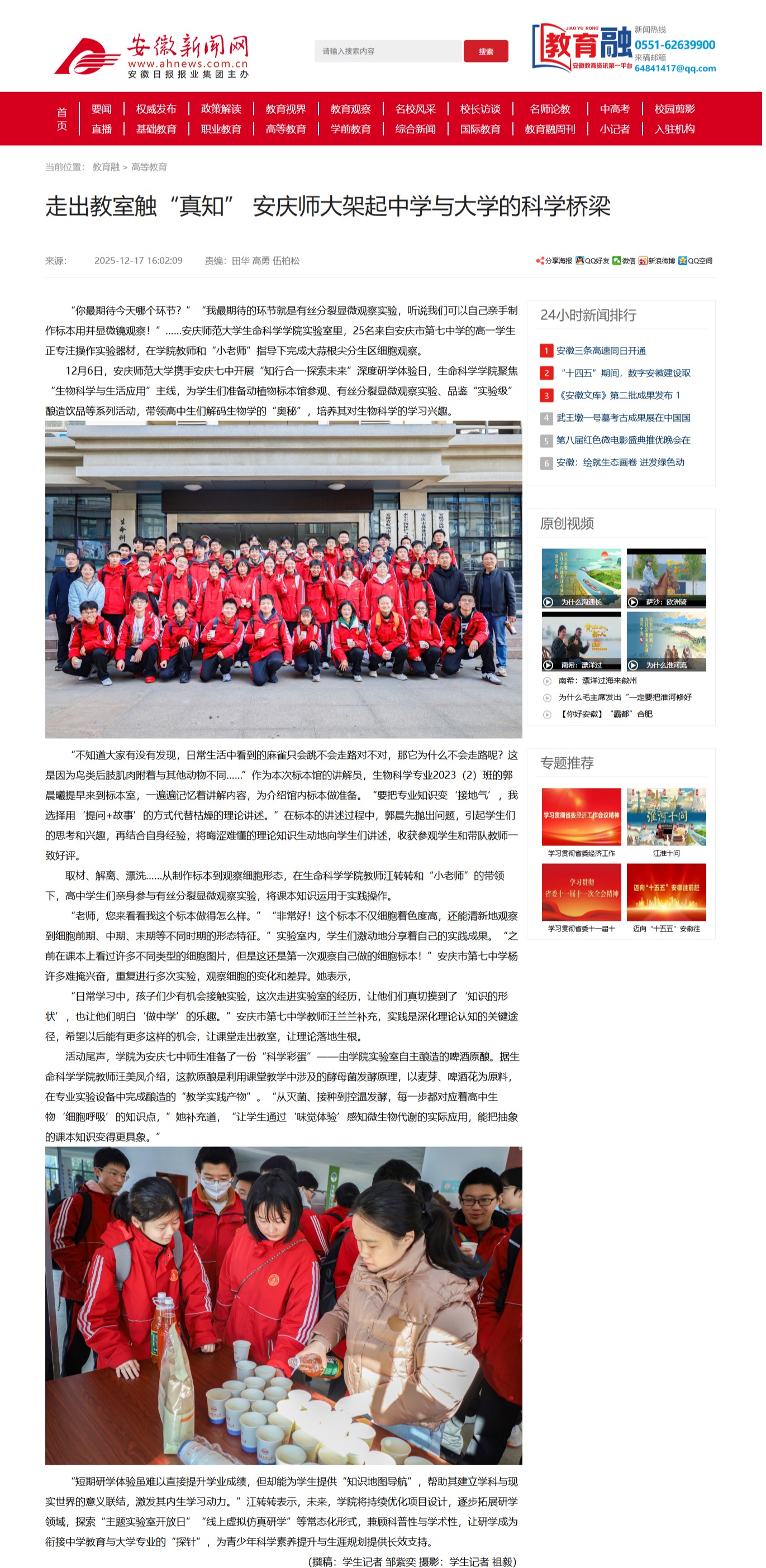 【安徽新闻网】走出教室触“真知” 安庆师大架起中学与大学的科学桥梁http://xxt.ahnews.com.cn/news/2025/12/17/c_43615.htm
