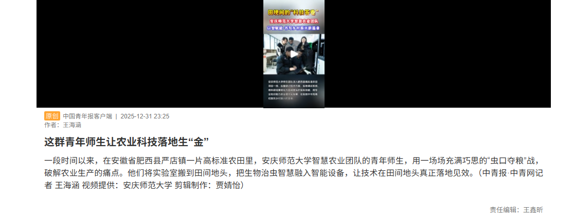 【中国青年报】这群青年师生让农业科技落地生“金”https://s.cyol.com/articles/2025-12/31/content_VYbwg4sl.html?gid=gDalElrX