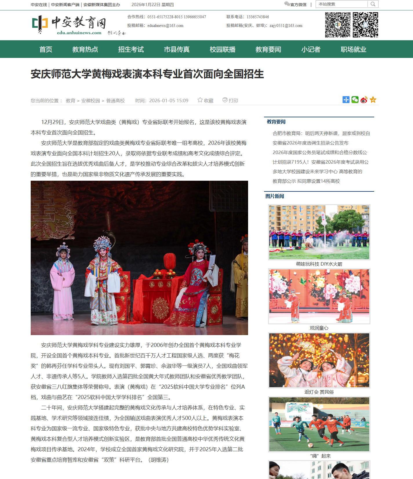 【中安教育网】37000cm威尼斯黄梅戏表演本科专业首次面向全国招生http://edu.anhuinews.com/ahxy/ptgx/202601/t20260104_9014463.html