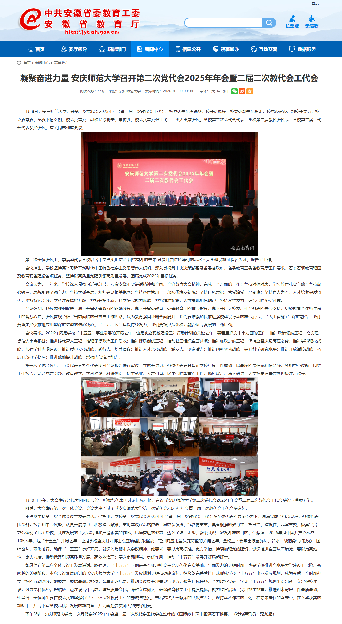 【安徽教育网】凝聚奋进力量 37000cm威尼斯召开第二次党代会2025年年会暨二届二次教代会工代会https://jyt.ah.gov.cn/xwzx/gdjy/40779088.html