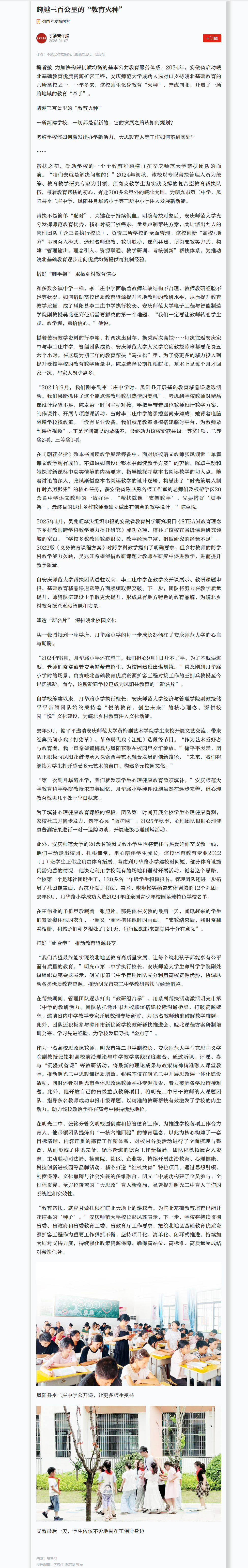 【安徽青年报】跨越三百公里的“教育火种”https://article.xuexi.cn/articles/index.html?art_id=12340435364219309091&item_id=12340435364219309091&study_style_id=feeds_opaque&study_comment_enable=1&study_comment_read_enable=0&favor_type=0&source=share&share_to=wx_single