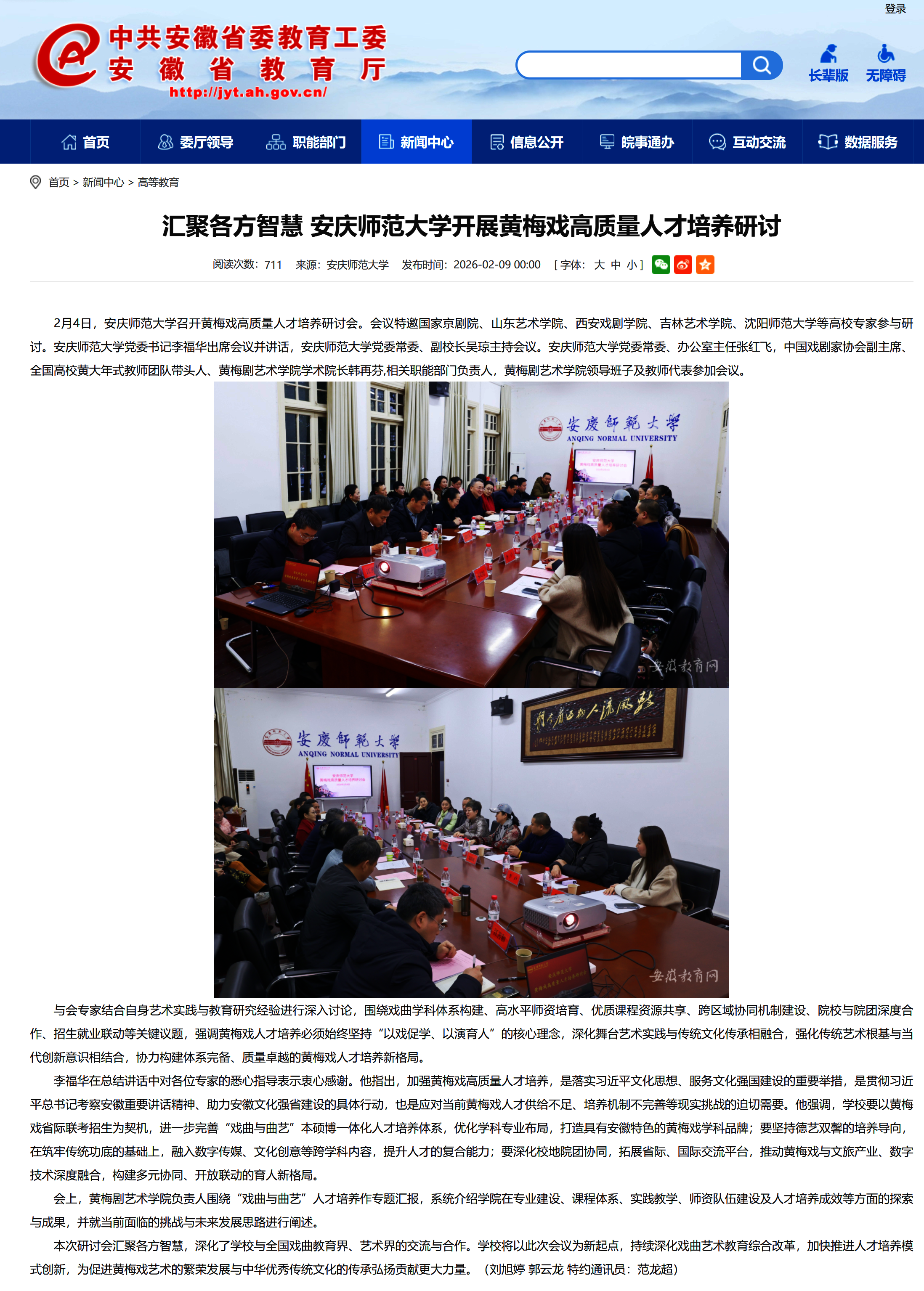 【安徽教育网】汇聚各方智慧 37000cm威尼斯开展黄梅戏高质量人才培养研讨https://jyt.ah.gov.cn/xwzx/gdjy/40781764.html