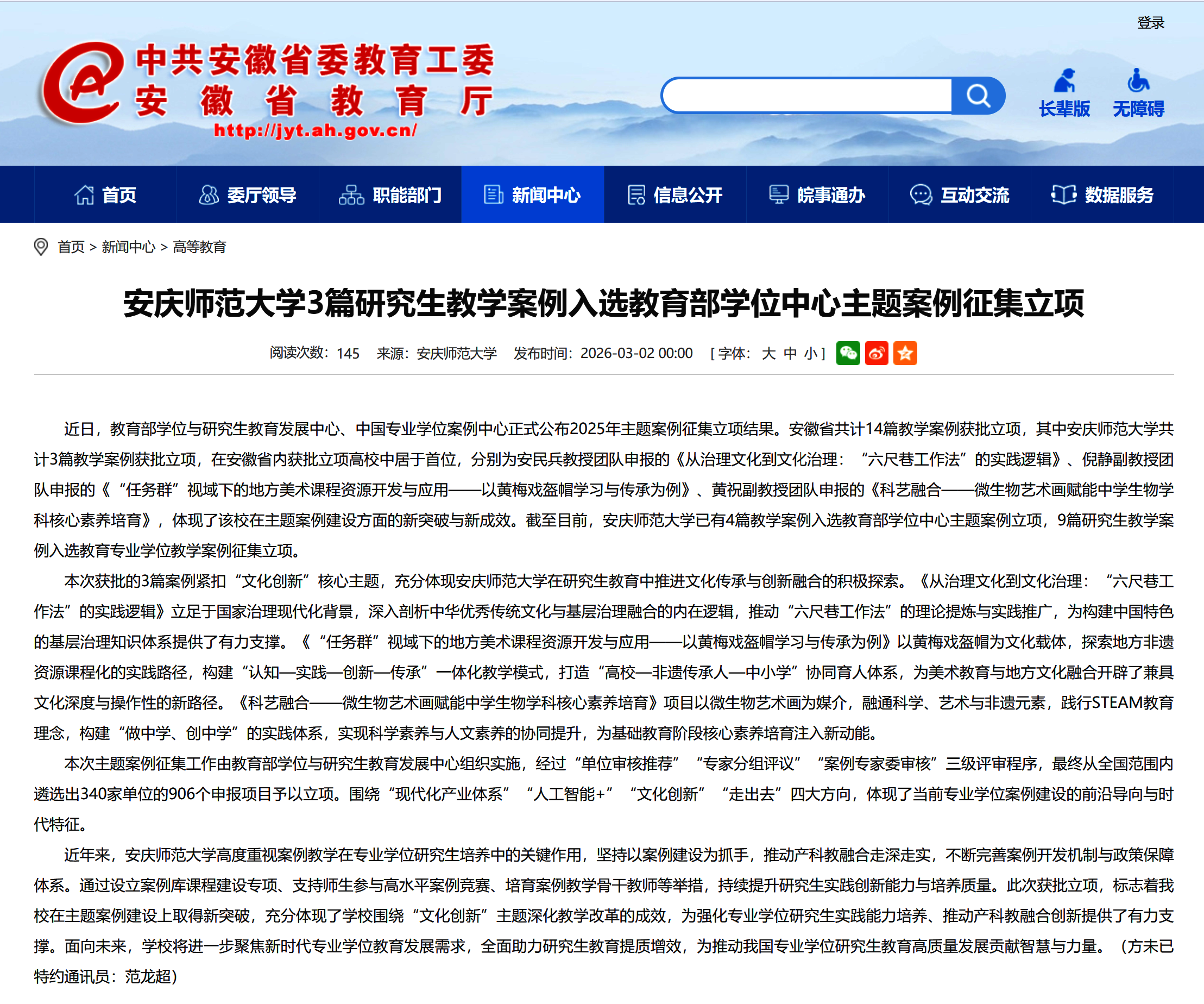 【安徽新闻网】37000cm威尼斯3篇研究生教学案例入选教育部学位中心主题案例征集立项https://jyt.ah.gov.cn/xwzx/gdjy/40782646.html