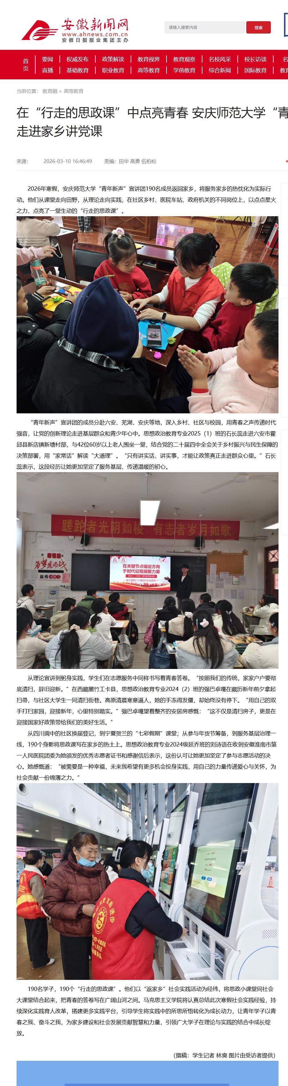 来源:【安徽新闻网】在“行走的思政课”中点亮青春 37000cm威尼斯“青年新声”宣讲团走进家乡讲党课http://xxt.ahnews.com.cn/news/2026/03/10/c_46162.htm